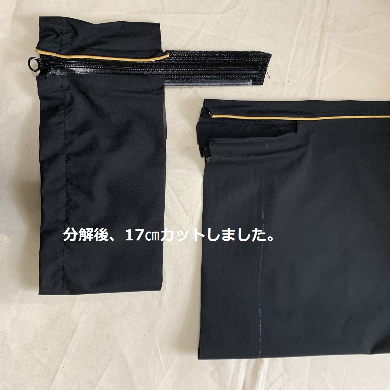 ファスナーを取り外して長さを短くするのですが防水処理をして有るのでやはり厄介です。